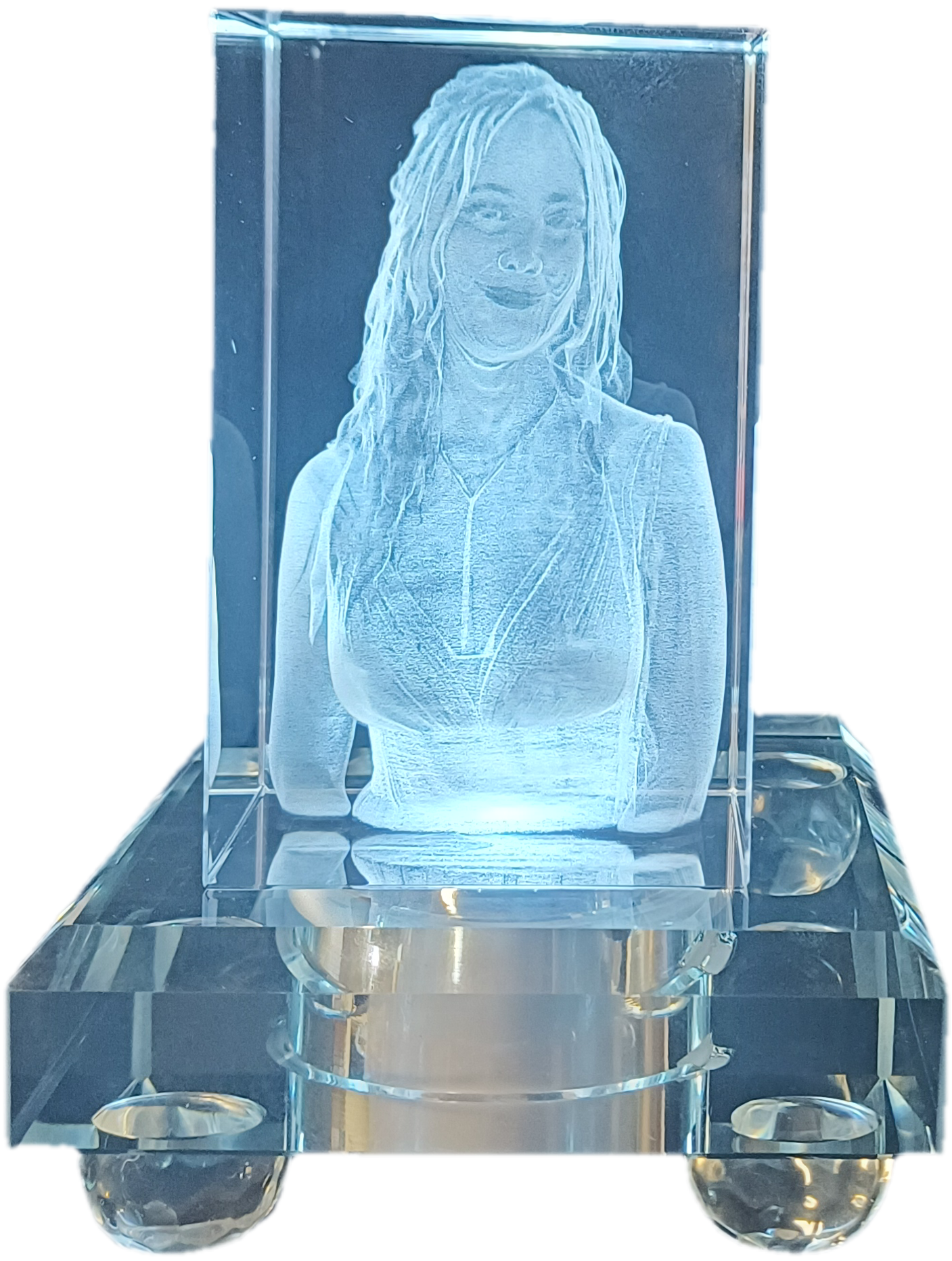 Wir gestalten aus ihrem Bild ein 3D Bild, gelasert in einem Glassockel.